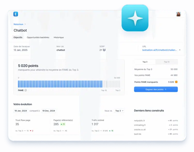 Améliorez votre autorité en ligne grâce à des recommandations de backlinks sur-mesure. Devancez vos concurrents avec une stratégie de netlinking efficace et structurée.
